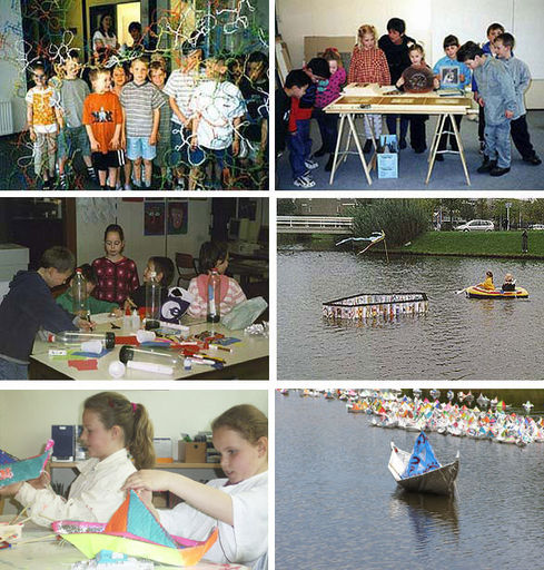 Basisschoolkinderen en Kunst v.l.n.r. Het Braambos - Samenwerking De Bosbouwers - Atelierbezoek Kindercultuurdag - Message in a bottle 1000 bootjes project 'Floriande Ahoy!'